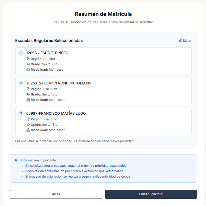 Ingrese a la plataforma de matrícula a través del siguiente enlace: mimatricula.dde.pr