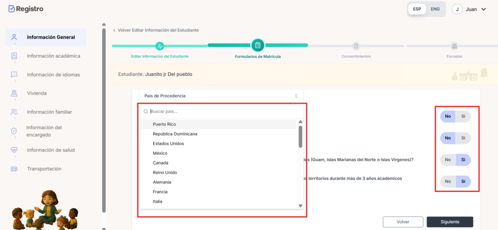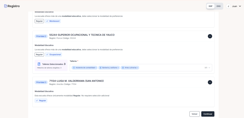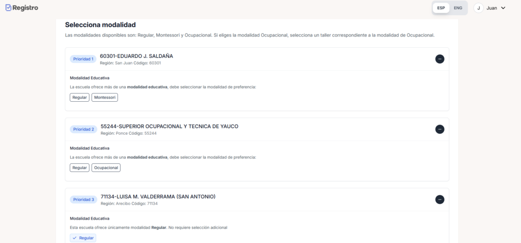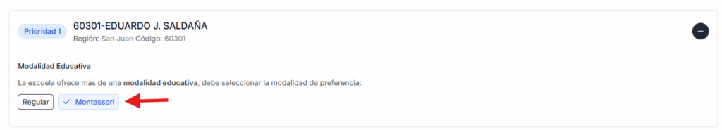 - Si ofrece Regular y Montessori, elija la modalidad deseada.