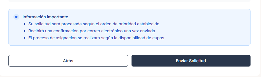 *Se recomienda leer el recuadro azul con Información Importante antes de enviar la solicitud.*