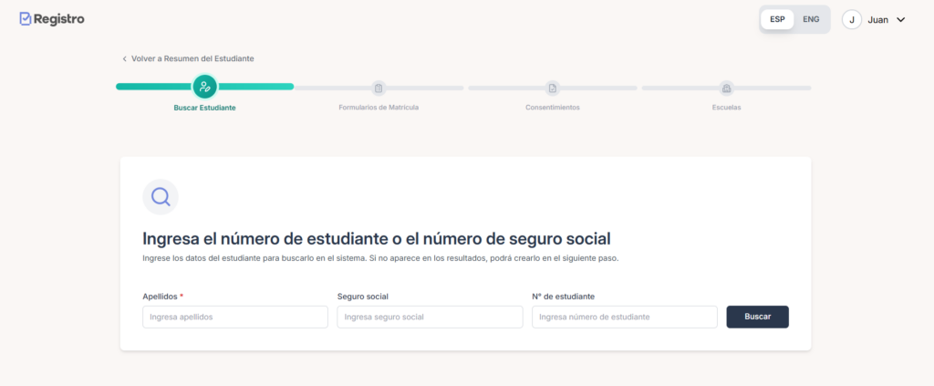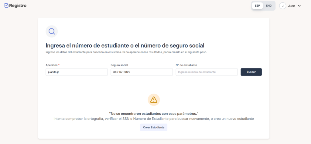 Podrá buscar al estudiante por apellido, número de Seguro Social o número de estudiante.