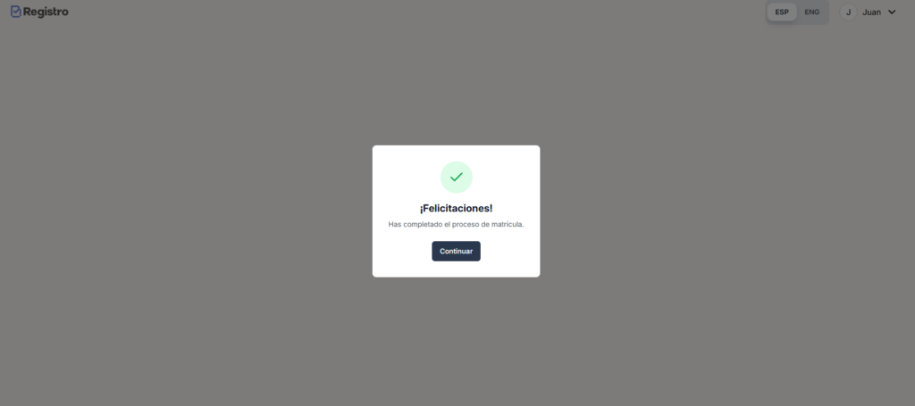 Una vez enviada la solicitud, aparecerá un mensaje confirmando que el proceso de matrícula se ha completado con éxito.