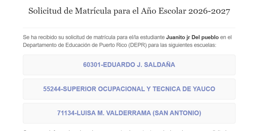 Ingrese a la plataforma de Registro de estudiantes en el siguiente link: mimatricula.dde.pr