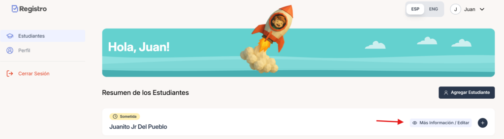 Si desea volver a agregar al estudiante, diríjase a la opción “Agregar estudiante” en la pantalla de resumen de estudiantes.