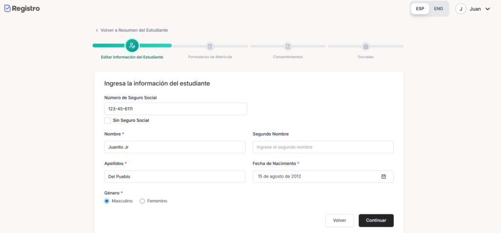 Paso 1 – Seleccionar al estudiante