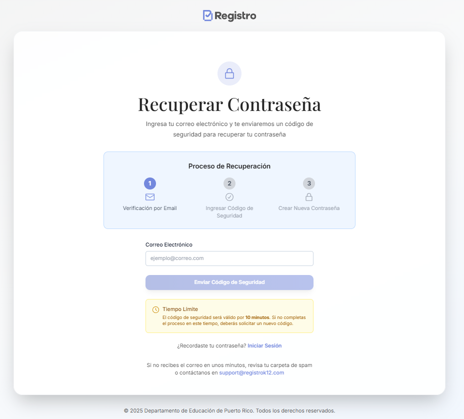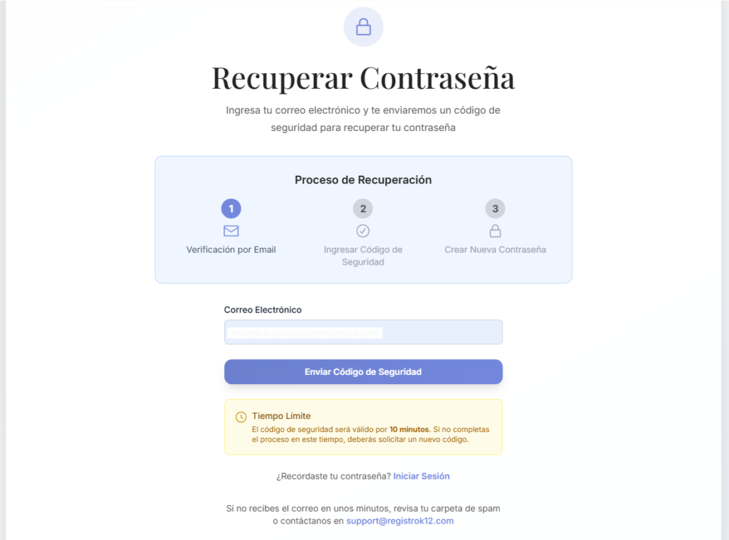 Esta acción lo redirigirá a la página de recuperación de contraseña.